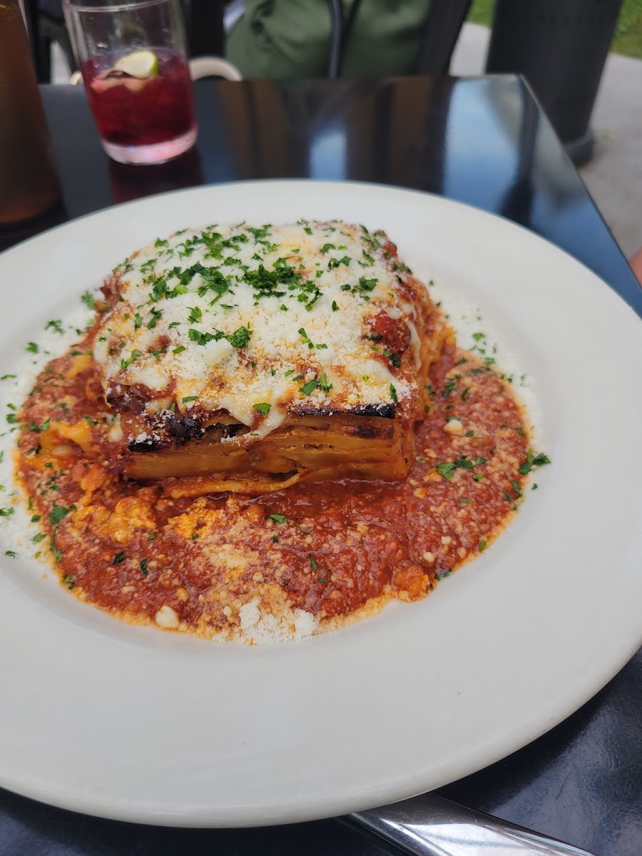 Amazing food and service! My boyfriend and I shared the calamari, the lasagna, and their special pizza which was a Crab Rangoon pizza. The sauce with the calamari and the lasagna sauce were so tasty! Our server really hyped up this pizza and man did it exceed expectations! The servers were very pleasant and had nice, chill vibes. We also each had 2 drinks each and the price was very reasonable for how good the food was. Loved it here 10/10.