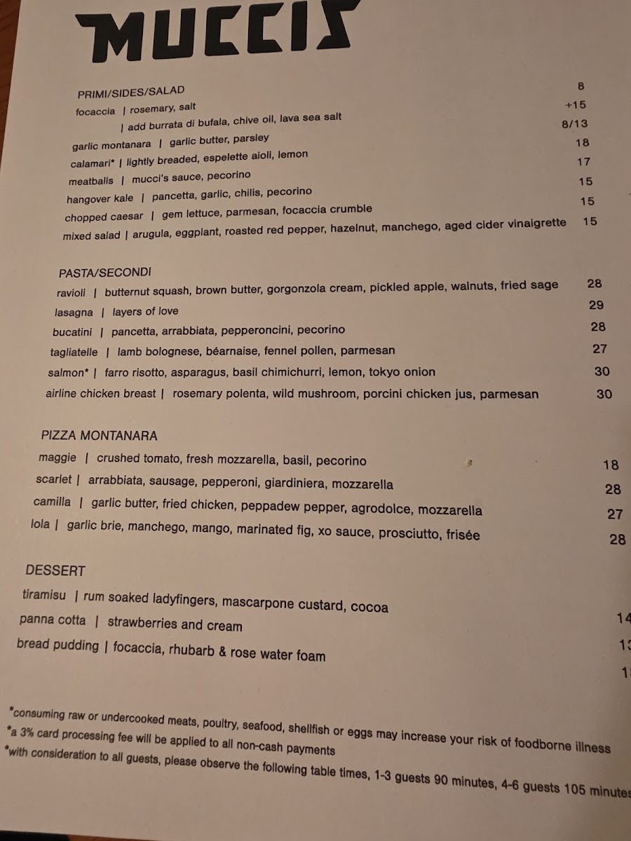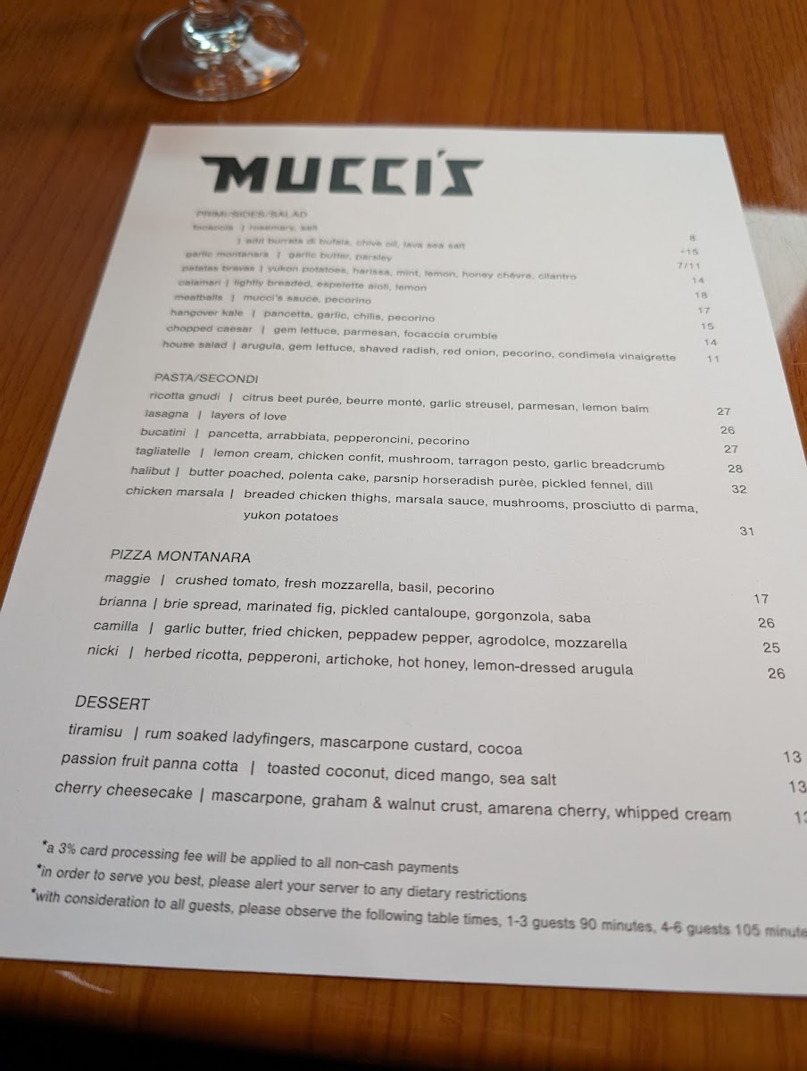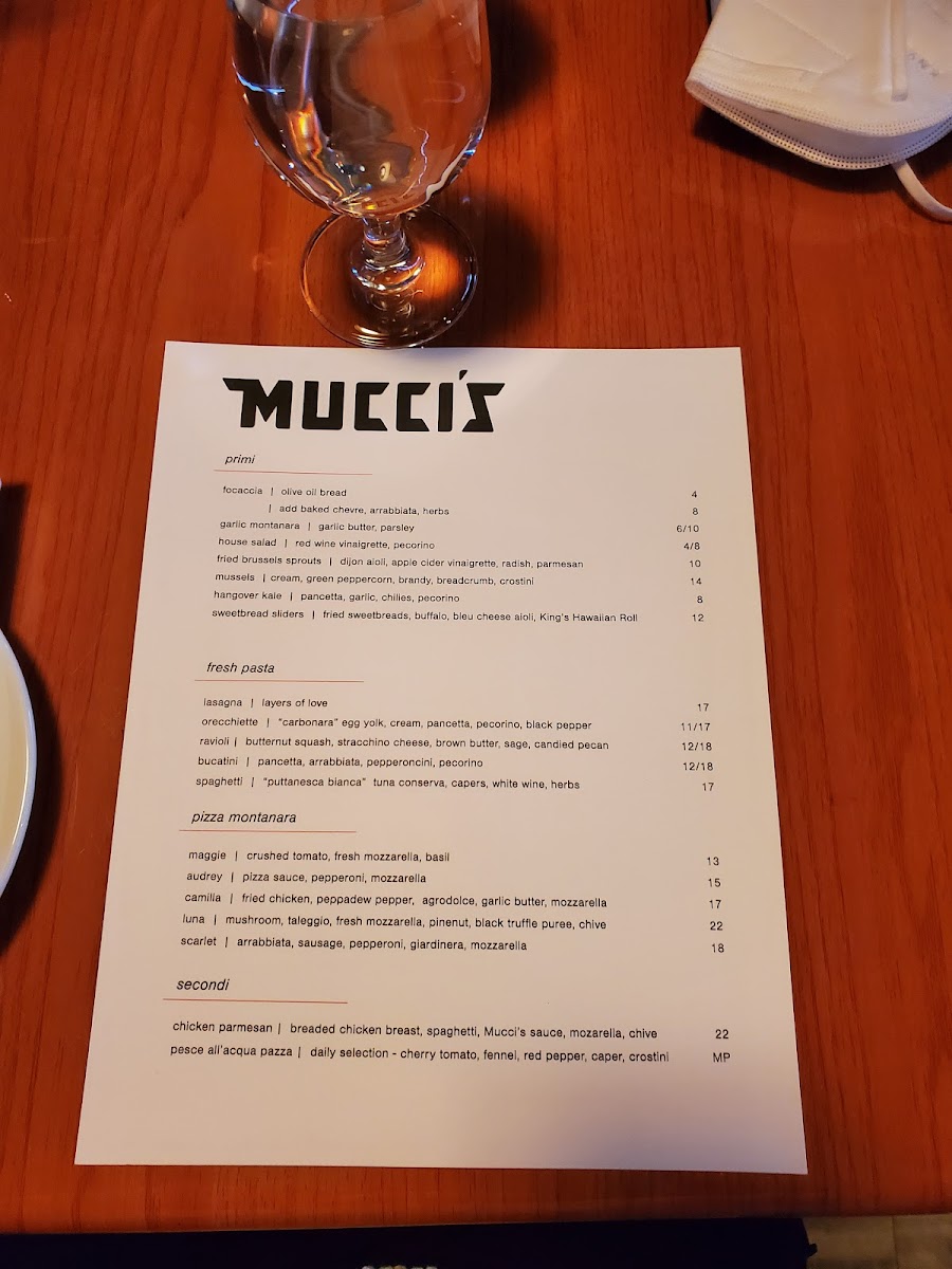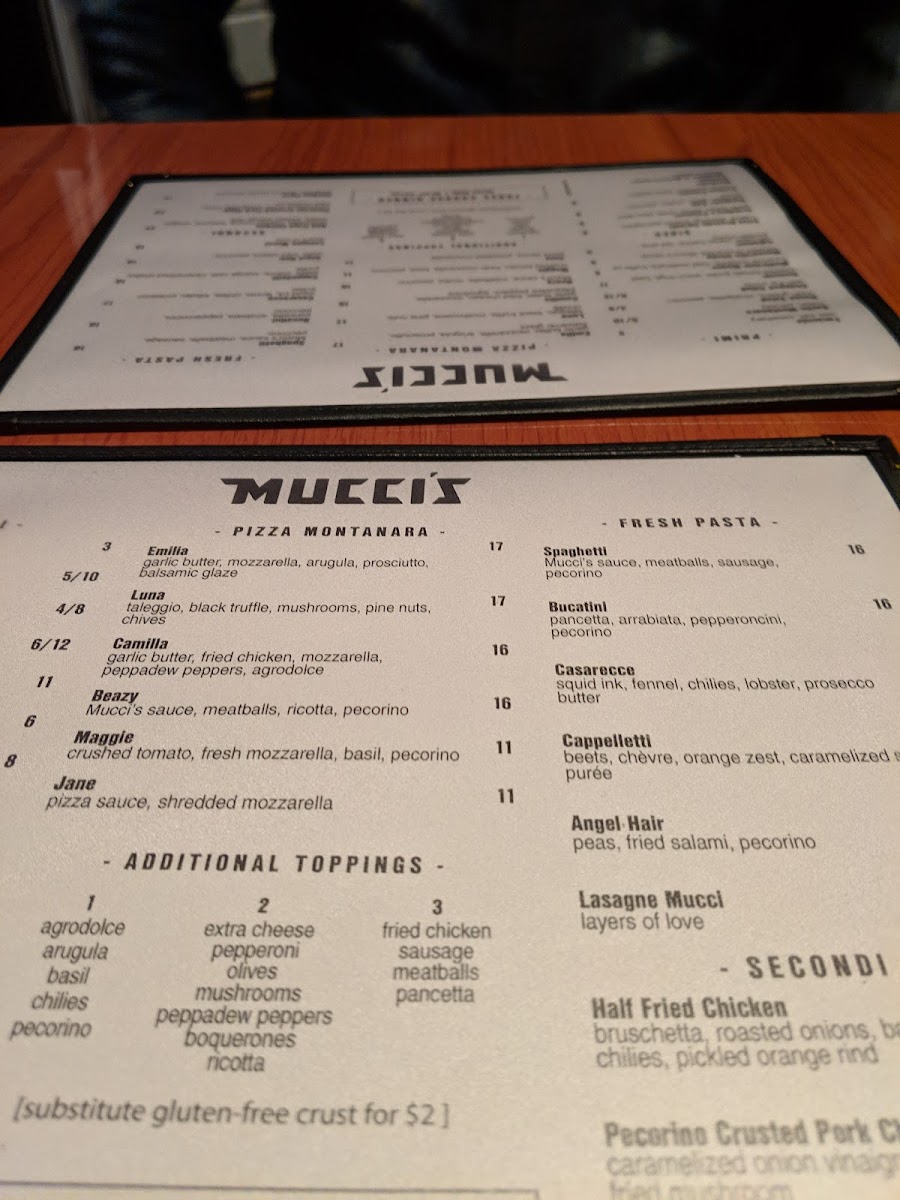Mucci's Italian Menu